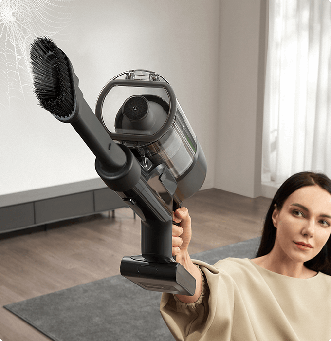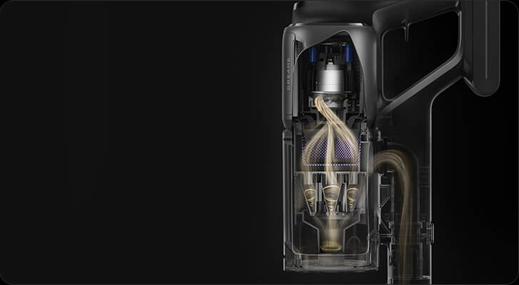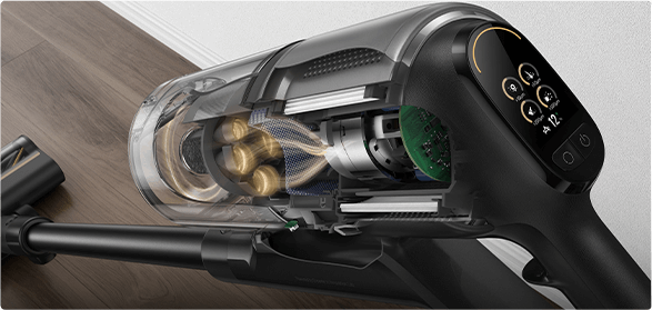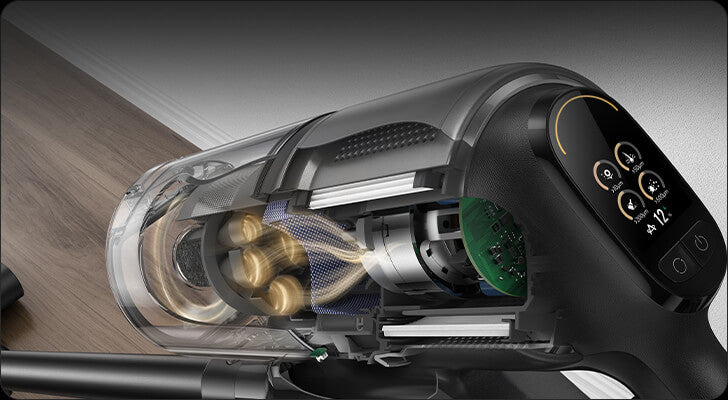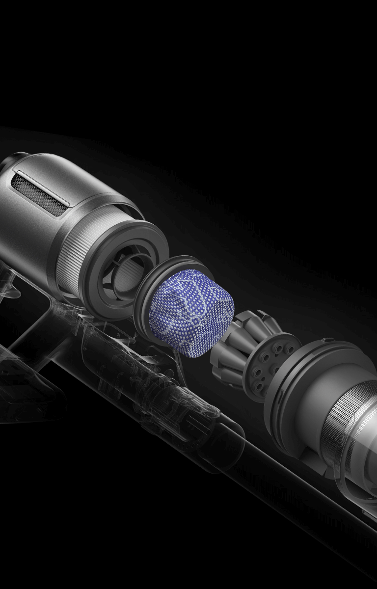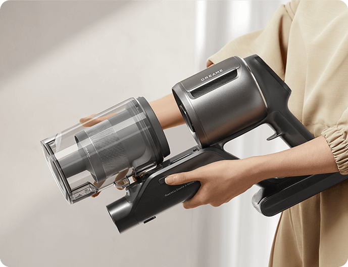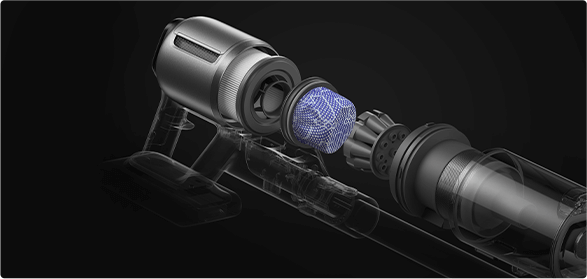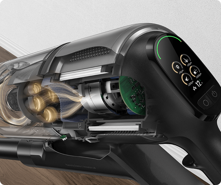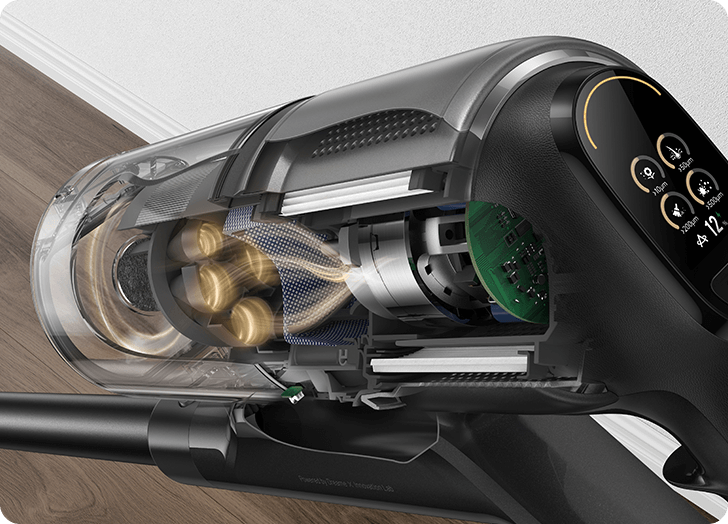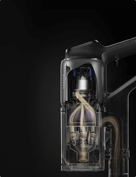 *310 AW, 150.000 dev/dk.: Kurum içi laboratuvar verilerimize dayanır; gerçek performans değişiklik gösterebilir. Mayıs 2024 itibarıyla Dreame kablosuz dikey süpürge ürün serisi içindeki en yüksek değeri temsil eden 310 AW emiş gücü.